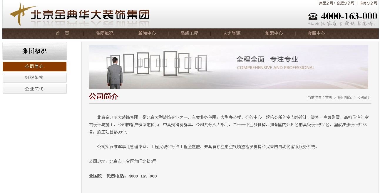 北京金典華裝飾建筑集團官方網站截圖: